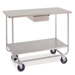 What’s more, with our one-piece welded tubular frame, all the joints and connection points are welded together for strength, there’s no mechanical fasteners that could loosen or fail. Stainless steel platform top and lower shelf are flanged down and hemmed to help eliminate any sharp edges. Carts roll easily on Swivel Casters with 5-in. (12.70cm) diameter wheels; two have wheel brakes for safety.